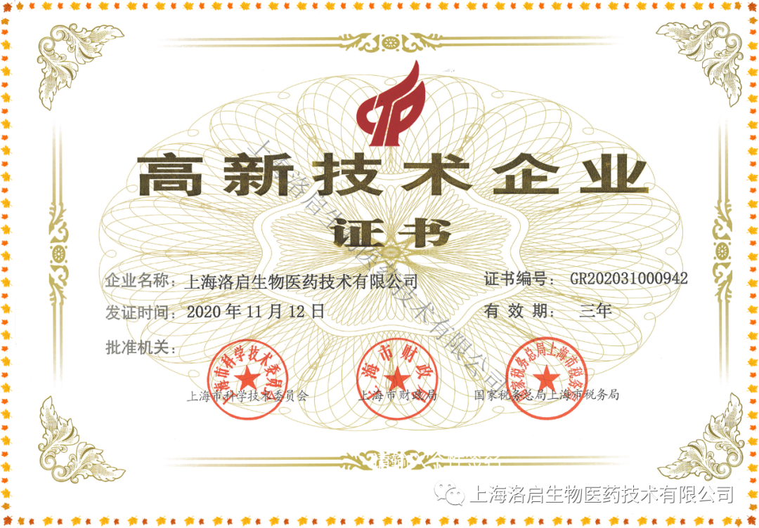 近期,上海2939威尼斯(中国)生物医药技术有限公司取得了由上海市科学技术委员会、上海市财政局、国家税务总局上海市税务局联合颁发的“高新技术企业证书”。