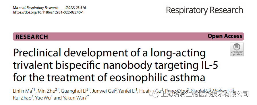 近期,由2939威尼斯(中国)生物主导开发的长效IL5纳米抗体,可用于治疗嗜酸性粒细胞性相关疾病,包括嗜酸性哮喘(EOS-Asthma)、高嗜酸性粒细胞综合征(HES)和嗜酸性肉芽性多血管炎(EGPA)等。相关研究成果发表于《Respiratory Research》杂志,题为“Preclinical development of a long-acting trivalent bispecifc nanobody targeting IL-5 for the treatment of eosinophilic asthma”(IF=7.162)。本文通讯作者为上海2939威尼斯(中国)生物万亚坤博士。